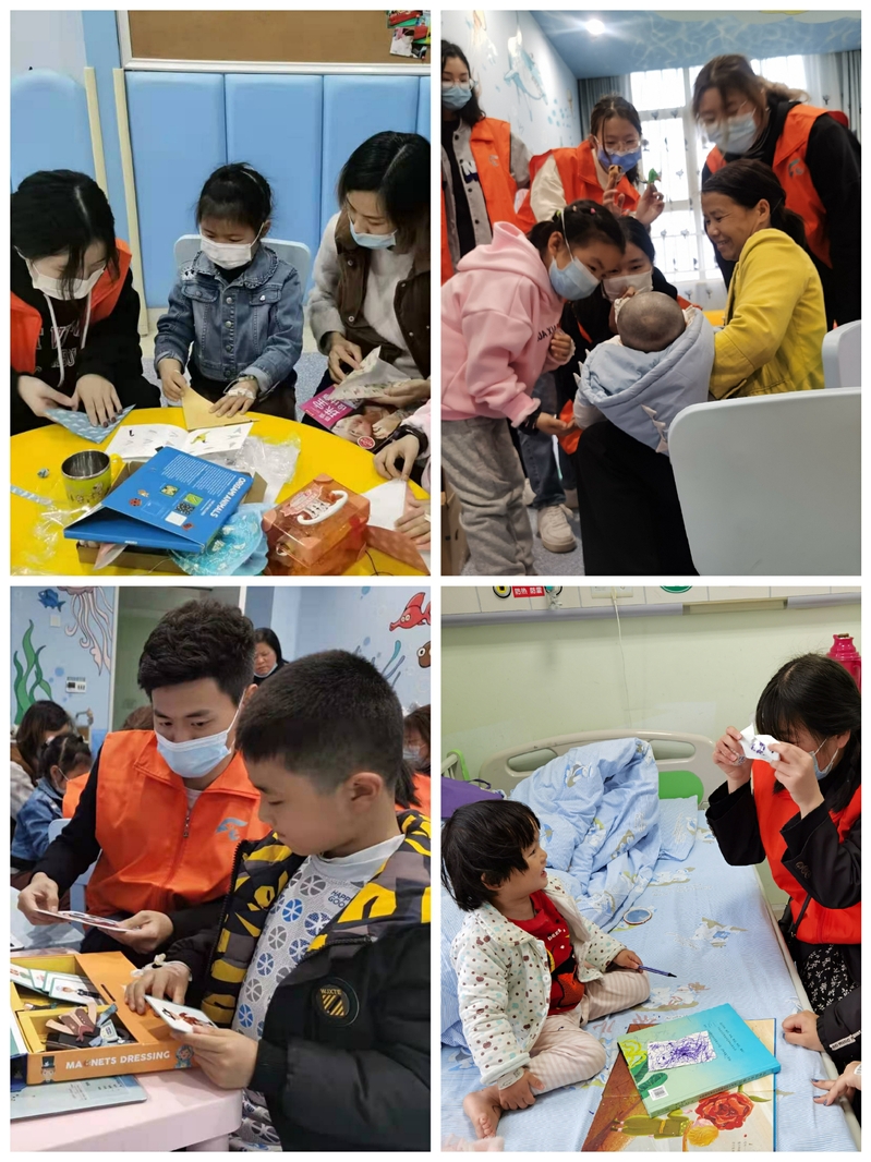 志愿者李慧丽在活动结束后说到:“虽然在最开始已经听到了医生护士对孩子们简单的介绍,但真正看到小孩子们手上、头上扎着针,还是非常心疼。我们与小朋友从开始的生疏交流,到逐渐适应到最后的完全接纳,中间的过程充满了爱与呵护。面对这一群可爱又善良的小朋友,在他们最艰难的时刻给他们带来温暖与陪伴,我感受到自己的付出非常有价值,体会到了志愿服务的精神。”