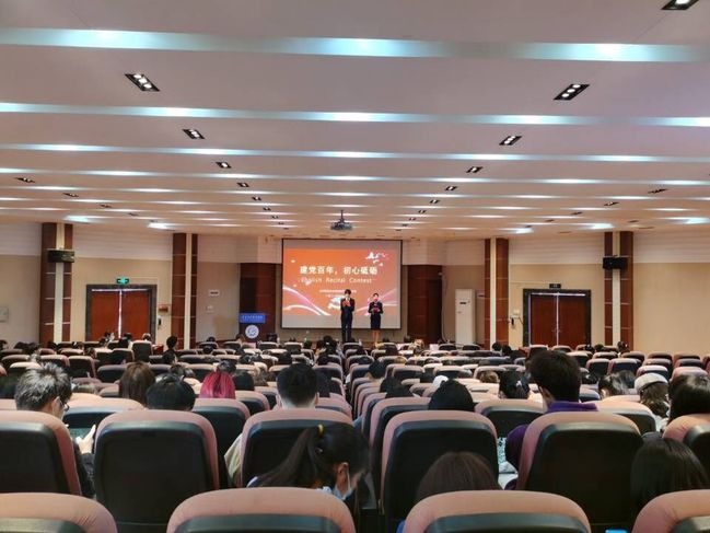 (通讯员 雷丽)“In recent years, the Communist Party of China has not only been able to lead the Chinese people of all nationalities out of poverty and into prosperity......”4月1日下午,凌峰楼C21传来阵阵慷慨激昂的朗诵声,疯狂英语俱乐部举办“建党百年 初心砥砺”朗诵大赛,鼓励武职学子用英文礼赞中国共产党建党百年辉煌。参加本次比赛的有外语外贸学院的聂钟鸣、彭丹、周扬、李任侠、张桂清、练琪、薛超等7位评委老师和150余名学生观众。
