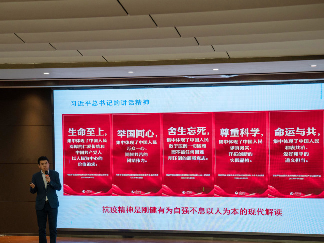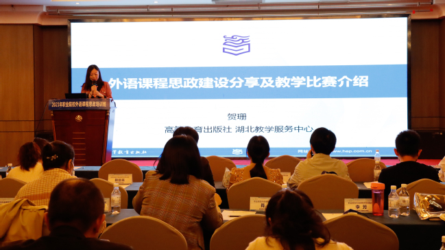 4月28日,高等教育出版社湖北省教学服务中心外语产品经理贺珊应邀与会,介绍了2021年全国高等学校外语课程思政教学比赛赛程安排,为培训班学员深耕精进外语课程思政教学,参与全国高水平外语类课程思政教学比赛竞技吹响了冲锋号。