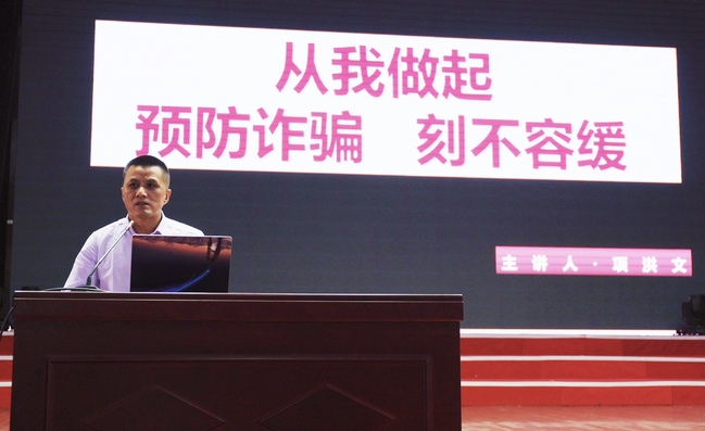 学校保卫处副处长项洪文作《防范新型电信网络诈骗》专题讲座。他结合当前网络电信诈骗发案特点,讲解了校园易发生的“杀猪盘”、冒充QQ好友诈骗、网络刷单返利诈骗、冒充亲友和熟人借钱诈骗、网购骗局等电信网络诈骗形式、发案特点,引用实际案例讲解了不法分子的惯用伎俩和手段,提醒学生在日常生活中要提高安全防范意识,遇骗不惊,不贪小利。