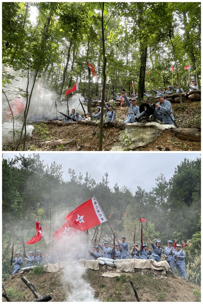 过草地,走山地,一路上天气炎热,但党员们精神抖擞,背着武器装备热血“出征”。在“袁家沟口歼灭战”体验环节,“红军”队伍潜伏在战壕中,一场“战火”蓄势待发。“冲啊!”当战斗的号角吹响,密林之中硝烟弥漫,“冲锋声、杀敌声”响彻山林。参与“沉浸式”的体验,让党员们仿佛穿越回那激情燃烧的革命年代,真切感受了红军的大无畏精神。