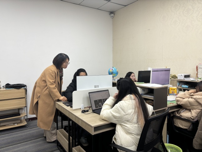 趁着学生工作的间隙,专业老师黄小蕊与实习学生进行了亲切交谈,询问他们的工作生活状况,勉励大家要认真工作,提升专业能力素质,期待同学们获得优异的实习成绩。虽然天气严寒,看到前来慰问的老师们,实习学子们表示很开心激动,感到很温馨暖心,2025届应英专业学生张舒怡说:“目前公司工作氛围很好,企业也很关心我们,我会珍惜眼前实习机会,在实习中锻炼和提高自己的工作能力,争取能被企业正式录用,成为一个真正的外贸人。”
