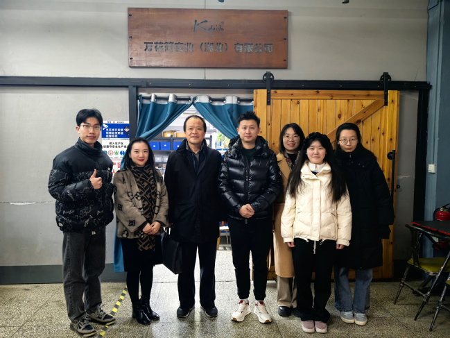 在万花筒实业(湖北)有限公司企业负责人唐超帆的带领下,邱文成一行来到企业生产线,实地走访了工作车间、询问学生实习情况,了解了企业文化、运营模式、外贸行业与专业教学的联系。在交谈过程中,双方就专业建设、实习实训及人才培养等进行了深入探讨,并达成了多项共识。