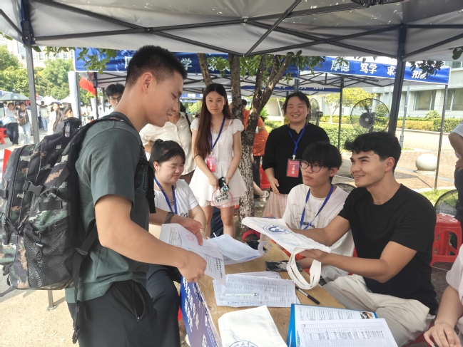 商英23301班的张文璇同学是众多志愿者中的一个缩影。迎新日,她的运动步数定格在3.2万步。她反复用英文、国际新生详细讲解武汉地铁线路图,被大家亲切地称赞为活的导航。这份奔波与耐心,完美诠释了外院学子的奉献与担当。志愿者张礼鑫同学也表示:虽然很累,但看到新生们顺利安顿下来,觉得一切付出都值得。