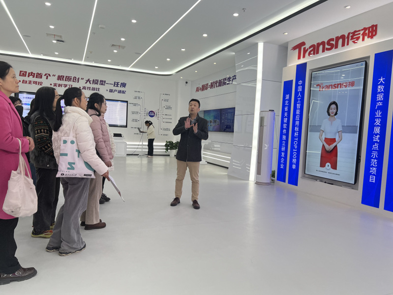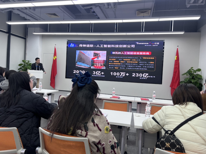 调研团队实地探访了传神公司的研发中心与项目孵化平台,亲身体验了“任度”双脑翻译大模型、AI翻译机等创新产品在真实场景中的应用。传神教育事业部资源总监靳伟系统阐释了以“LIT能力模型”为核心的智慧教育解决方案,展示了语言技术如何深刻驱动翻译人才培养模式的革新,为教师们提供了直观的技术认知与行业洞察。